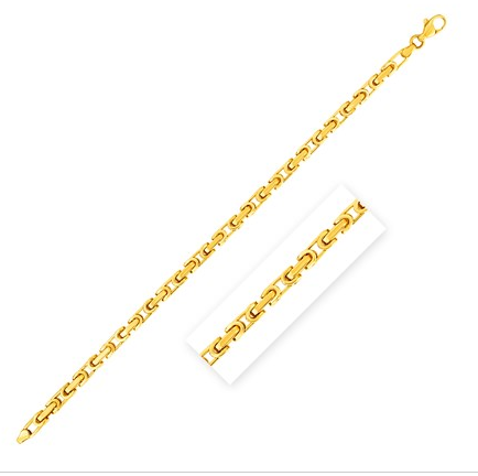 14k Yellow Gold 8 1/2 inch Mens Byzantine Chain Bracelet Stock Number: 95488 This unique men's bracelet features the modern, open structure of Byzantine chain and the exquisite polish of 14k yellow gold. Bracelet is 8 1/2 inches long, 4.8mm wide, and closes with a lobster clasp. Price $776.17