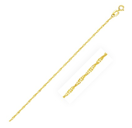 Singapore Bracelet in 14k Yellow Gold (1.0mm) Stock Number: 79122 Singapore bracelet crafted in 14k yellow gold measuring 1.0 millimeters in width. Price $40.88