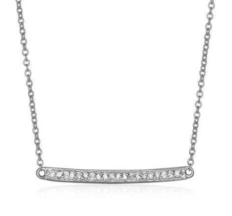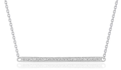 14k White Gold 18 inch Necklace with Gold and Diamond Bar (1/10 cttw) Stock Number: 53725 This gold bar necklace with diamonds makes a statement with its simplicity and shine. Necklace is 18 inches long and closes with a lobster clasp. Price $455.48