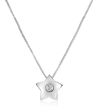 14k White Gold Necklace with Gold and Diamond Star Pendant Stock Number: 30466 A simple, sparking star to light your way, in white gold with a diamond. 0.6 millimeters box chain necklace is 18 inches long and closes with a lobster clasp. Price $265.00