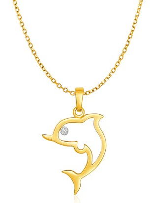 14k Yellow Gold Necklace with Gold and Diamond Open Dolphin Pendant Stock Number: 27696 Wear this playful gold and diamond dolphin as a reminder of the sea. 0.8 millimeters diamond cut cable chain necklace is 18 inches long and closes with a lobster clasp. Price $321.02