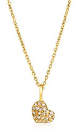 14kt Yellow Gold 16 inch Necklace with Gold and Diamond Heart Pendant (1/10 cttw) Stock Number: 21360 Show your love with this petite heart in gold with diamonds. 0.7 millimeters round link cable link chain necklace is 16 inches long. Price $483.00