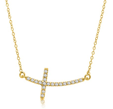 Curved Cross Necklace with Diamond Accents in 14k Yellow Gold (.21cttw) Stock Number: 06976 Adorned with a diamond studded curved cross, this lovely necklace is designed in superb 14k yellow gold. Available in size 18 inches. Price $624.85