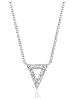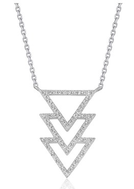 Triple Triangle Pendant with Diamonds in 14k White Gold (1/5 cttw) Stock Number: 17584 A uniquely gorgeous triple triangle diamond pendant hangs from a 16 inches cable chain and is secured with a lobster closure. Made in 14k white gold. Price $665.00