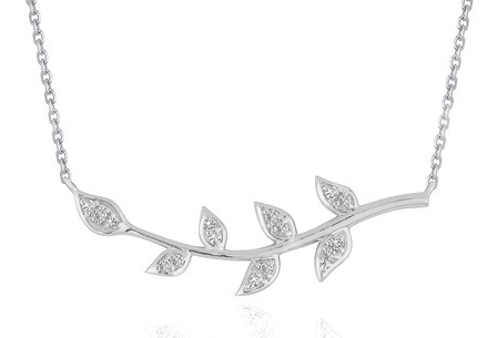 Diamond Vine Design Pendant in 14k White Gold Stock Number: 33668 This vine design with diamond studded leaves is made of 14k white gold and hang from a 18 inches cable chain. It is secured with a lobster clasp. Price $596.50