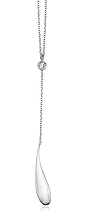 14k White Gold Teardrop Lariat Necklace with Diamond Stock Number: 35435 Like a frozen droplet of water, a shiny drop of polished 14k white gold hangs below the single opulent diamond of this fascinating lariat necklace. Necklace is 18 inches long and closes with a lobster clasp. Weight of diamond is .024ct. Price $328.00