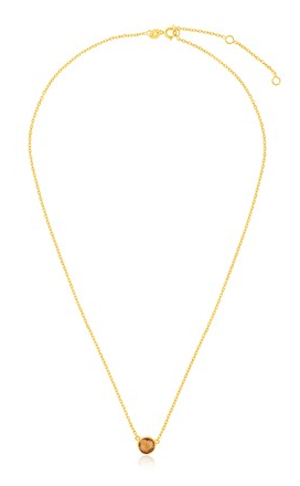 14k Yellow Gold 17 inch Necklace with Round Citrine Stock Number: 22277 The beautiful spring-like color of a fine round citrine adds a splash of color and glimmering depth to this classic 14k yellow gold necklace. Necklace is 17 inches long and closes with a spring ring clasp. Price $242.00