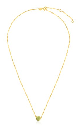 14k Yellow Gold 17 inch Necklace with Round Peridot Stock Number: 00770 The beautiful spring-like green of a fine round peridot adds a splash of color and glimmering depth to this classic 14k yellow gold necklace. Necklace is 17 inches long and closes with a spring ring clasp. Peridot is 6mm in diameter. Price $241.18
