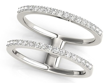 Thin Dual Band Diamond Ring in 14k White Gold (3/8 cttw) Stock Number: 99054 This 14k white tone gold ring features a dual band design with a center bar element. Embellished with beautiful diamonds. Price $1,156.61