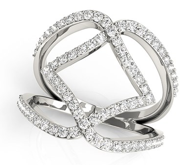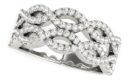 Diamond Interlinked Band Style Ring in 14k White Gold (3/4 cttw) Stock Number: 42466 This fancy ring features an interlaced design with diamond studded dual band sections. Made of 14k white gold. Price $1,615.40