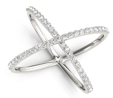 Diamond X Motif Ring in 14k White Gold (1/2 cttw) Stock Number: 86373 This uniquely gorgeous ring showcases an X design and is set with diamonds. Made of 14k white gold. Price $1,285.84