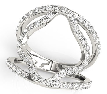Diamond Studded Interlocking Waves Ring in 14k White Gold (5/8 cttw) Stock Number: 37964 This unique ring makes a statement with two wide wavelike paths of diamonds set in 14k white gold. Price $1,615.39