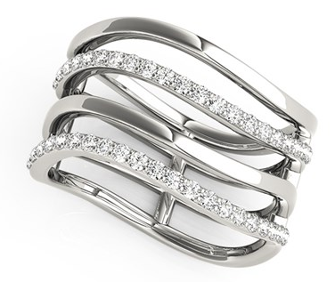 Diamond Studded Ring with Four Curves in 14k White Gold (5/8 cttw) Stock Number: 50504 This gleaming ring features four curved rows of diamonds set it 14k white gold. Price $1,544.32