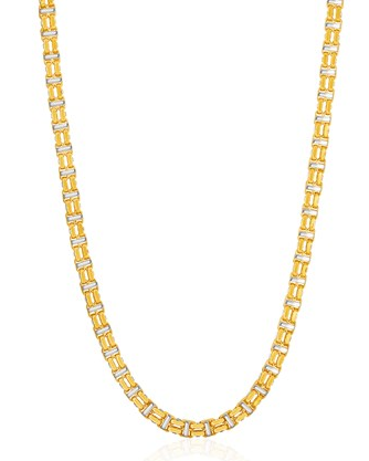14k Two-Toned Yellow and White Gold Double Link Men's Necklace Stock Number: 88357 A square profile and white gold accents add strength contrast to this two-toned double oval link yellow gold necklace. Necklace is 24 inches long, has a 4 millimeters square profile, and closes with a lobster clasp. Price $2,581.00