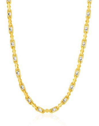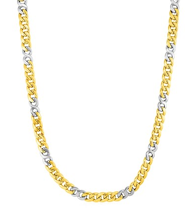 14k Two-Toned Yellow and White Gold Link Men's Necklace with Beads Stock Number: 19786 Beadlike circles of yellow and white gold nestle within oval yellow gold links in this exquisite two-toned necklace. Necklace is 22 inches long and closes with a lobster clasp. Price Size 22" $2,230.10