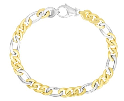 Figaro Chain Men's Bracelet in 14k Two-Tone Gold Stock Number: 42309 Designed in 14k two-tone gold, this men's bracelet features a Figaro link. Measures 8 1/2 inches and secured with a lobster lock. Price Size 8.5" $2,830.00