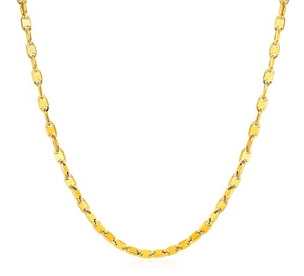 Necklace with Long Oval Links in 14k Yellow Gold Stock Number: 98526 Long, linear links give this gold necklace a geometric feel and a delicate profile. Necklace is 22 inches long and closes with a lobster clasp. Price Size 22" $1,780.61