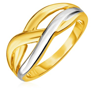 14k Two Tone Gold Braid Motif Ring Stock Number: 69276 One contrasting curve of polished white gold punctuates wavelike curves of 14k yellow gold in this exquisite ring. Ring size 7. Price $270.00