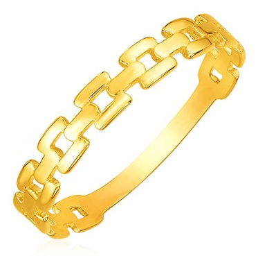 14k Yellow Gold Chain Link Ring Stock Number: 77458 This unique 14k yellow gold ring mimics the links of a very tiny chain. Ring is size 7. Price $120.00