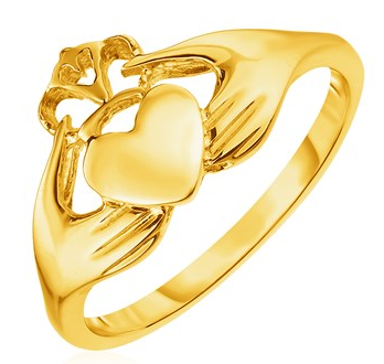 14k Yellow Gold Claddagh Ring Stock Number: 42680 This outstanding ring features a traditional Claddagh symbol rendered in exquisite polished 14k yellow gold. Ring size 7. Price $266.00