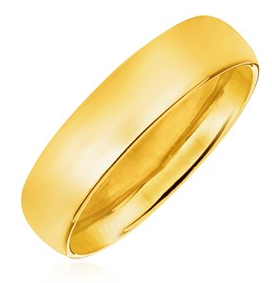 14k Yellow Gold Comfort Fit Wedding Band Stock Number: 36976 Traditional symbolism meets modern comfort and practicality in this elegant 14k yellow gold wedding band. Band is 6mm wide and is available in ring sizes 6 to 12. Price $230.00