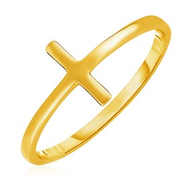 14k Yellow Gold Cross Motif Ring Stock Number: 98806 A modern, polished expression of faith, this exquisite 14k yellow gold ring is highlighted by a crosspiece that suggests am overall cross motif. Ring size 7. Price $115.00