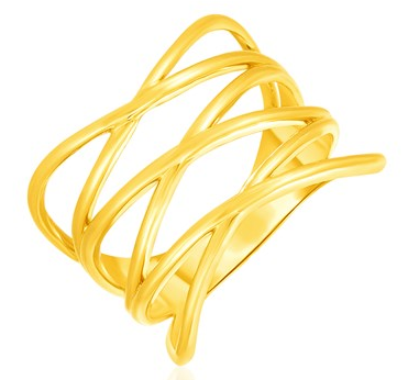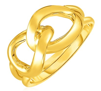 14k Yellow Gold Polished Interlaced Motif Ring Stock Number: 84079 Fascinating shapes of polished 14k yellow gold combine beautifully in a lovely interlace pattern on this unique ring. Ring Size 7 to 9. Price $530.56