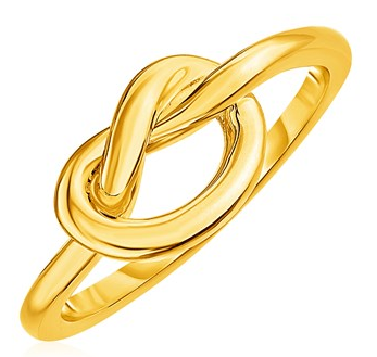14k Yellow Gold Polished Knot Ring Stock Number: 75997 A delicate and enduring reminder of love, this ring in 14k yellow gold features a classic know shape. Ring size 7. Price $395.00