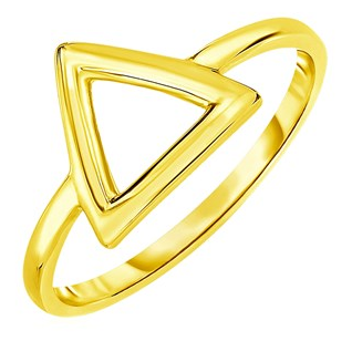 14k Yellow Gold Ring with Triangle Stock Number: 82663 The simple geometry of an open triangle decorates the center of this lovely, modern 14k yellow gold ring. Ring size 7. Price $160.16