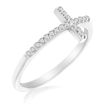 Cross Motif Ring with Diamond Accents in 14k White Gold (.11cttw) Stock Number: 67467 A magnificent crucifix motif ring embellished with.11ct diamonds. Designed in 14k white gold. Price $460.00
