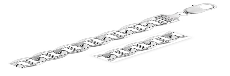 Sterling Silver Rhodium Plated Mariner Chain (10 mm) Stock Number: 03044 Rhodium plated mariner chain crafted in sterling silver measuring 10 millimeters in width. Available in lengths 24 inches and 26 inches.