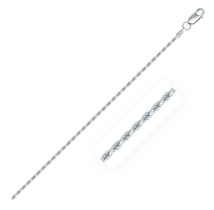 Diamond Cut Rope Chain in 925 Sterling Silver (1.8 mm) Stock Number: 66742 Diamond cut rope chain crafted in 925 sterling silver featuring lobster clasp closure and measuring 1.8 millimeters in width. Available in lengths 16 inches, 18 inches, 20 inches, 24 inches and 30 inches.