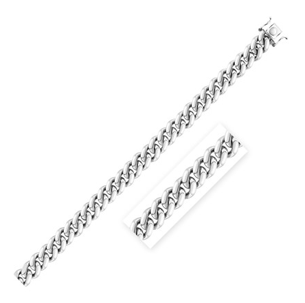 Sterling Silver Rhodium Plated Miami Cuban Chain (8.4 mm) Stock Number: 02274 Rhodium plated Miami cuban chain crafted in sterling silver measuring 8.4 millimeters in width. Available in lengths 22 inches, 24 inches and 26 inches.