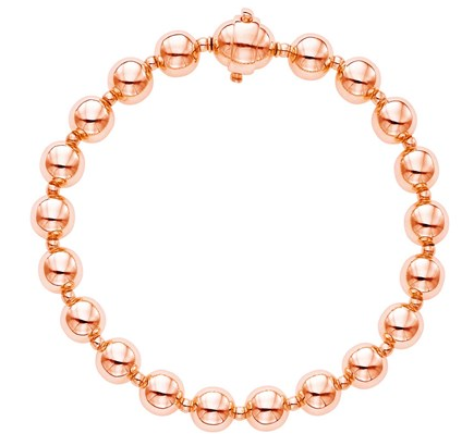 14k Rose Gold 7 3/4 inch Polished Bead Bracelet Stock Number: 44806 Simple yet stunning, this gorgeous bracelet features an unending parade of polished 14k rose gold spheres, including its disguised clasp. Bracelet is 7 3/4 inches long. Price $1,482.22