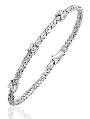 Dual Row Basket Weave Bangle with Diamond Cross Accent in 14k White Gold (7.0mm) Stock Number: 20701 This bangle features two basket weave designed rows crafted in 14k white gold and is accentuated with a diamond accented cross. It measures 7.0 millimeters in width and is secured with a push lock. Price $1,916.24