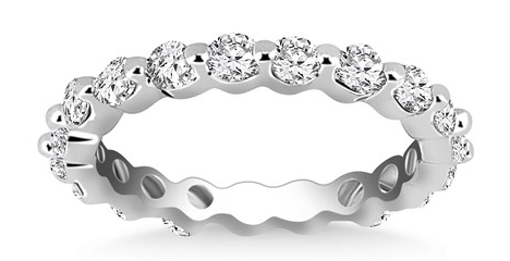 Prong set Round Diamond Eternity Ring in 14k White Gold Stock Number: 06451 A timeless ring design showcasing 18-22 round cut diamonds prong set on a band crafted in 14k white gold.