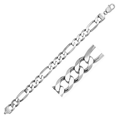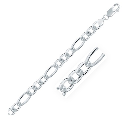 Classic Rhodium Plated Figaro Chain in Sterling Silver (11.6mm) Stock Number: 77388 Classic rhodium plated Figaro chain crafted in sterling silver measuring 11.6 millimeters in width and featuring a lobster clasp closure. Available in 24 inches.