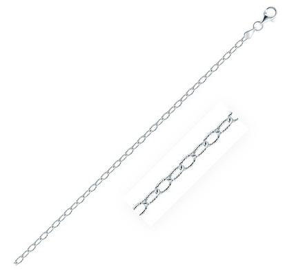 Classic Rhodium Plated Rolo Chain in 925 Sterling Silver (2.5mm) Stock Number: 40453 Classic rhodium plated rolo chain crafted in 925 sterling silver measuring 2.5 millimeters in width and featuring a lobster clasp closure. Available in lengths 16 inches, 18 inches and 20 inches