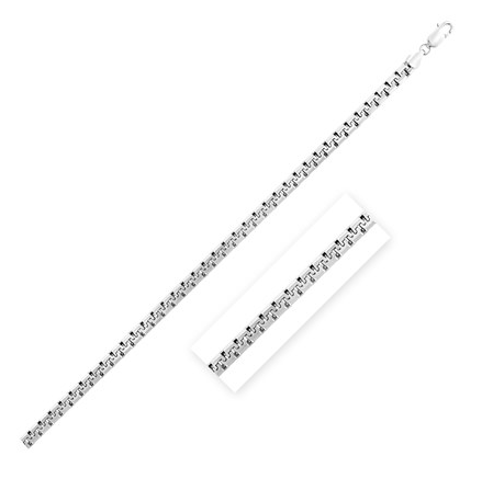Sterling Silver Rhodium Plated Greek Box Chain (5.5 mm) Stock Number: 02556 Rhodium plated greek box chain crafted in sterling silver measuring 5.5 millimeters in width. Available in lengths 20 inches, 22 inches and 24 inches.