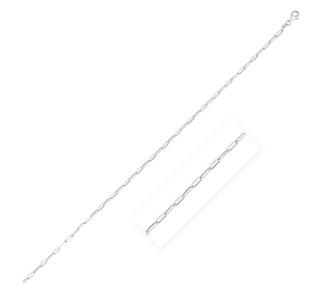 Sterling Silver Rhodium Plated Paperclip Chain (2.5 mm) Stock Number: 65905 Brilliantly shiny sterling silver links come together to form this contemporary paperclip chain measuring 2.5 mm in width and closes with a lobster clasp. Available in lengths 16, 18, 20 and 24 inches.