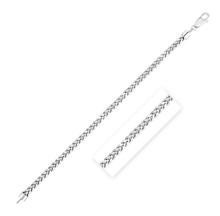 Sterling Silver Rhodium Plated Round Franco Chain (4.0 mm) Stock Number: 75931 Rhodium plated round franco chain crafted in sterling silver measuring 4.0 millimeters in width. Available in lengths 20 inches, 22 inches and 24 inches.